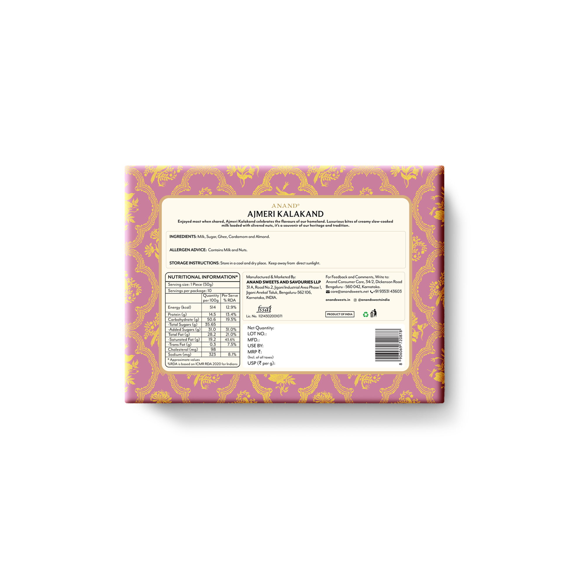 The delicate milk sweet, packed in beautifully designed boxes showcasing motifs of Indian royalty, is best consumed within 15 days of being purchased. Gift with pride or carry home, store in an airtight container and refrigerate.