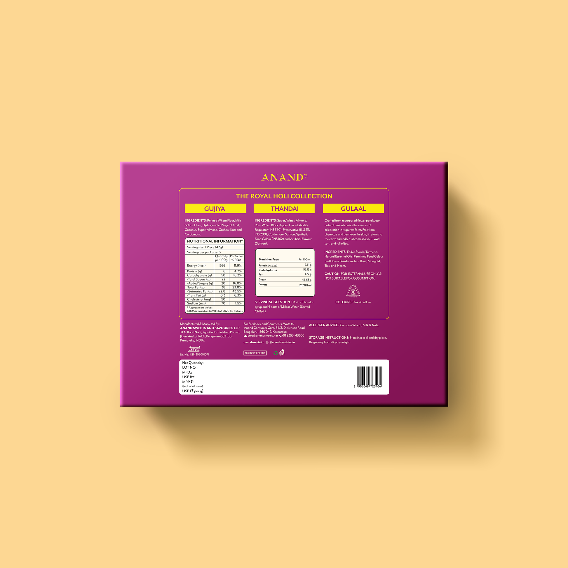 Over decades, Anand has grown to be synonymous with premium quality Indian sweets. Using technique, skill and science, our mithai artisans have perfected our recipes, packaging and processes. At hygienic, state- of the - art making facility we mould over 30,000 kgs of sweets everyday to deliver noticeable freshness, patrons can feel, taste and enjoy. Only absolutely fresh, carefully selected ingredients sourced from the best across the country go into making every bite.