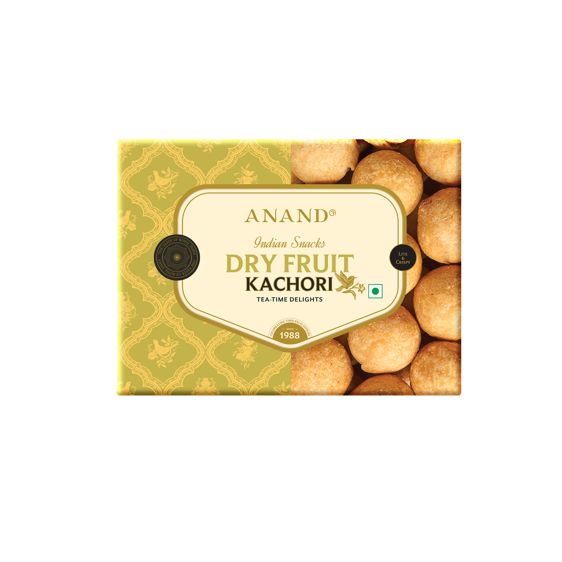 Anand Sweets Dry Fruit Kachoris are deep-fried crumbly balls of deliciousness that pairs perfectly with masala chai. Made with all-purpose flour, cashews, raisins and a generous dash of Indian spices, the dry fruit kachoris are a flavourful play of tastes – sweet, spicy and tangy. Have them as evening snack with your choice of beverage. Also, brighten up parties or picnics by adding them as finger food.