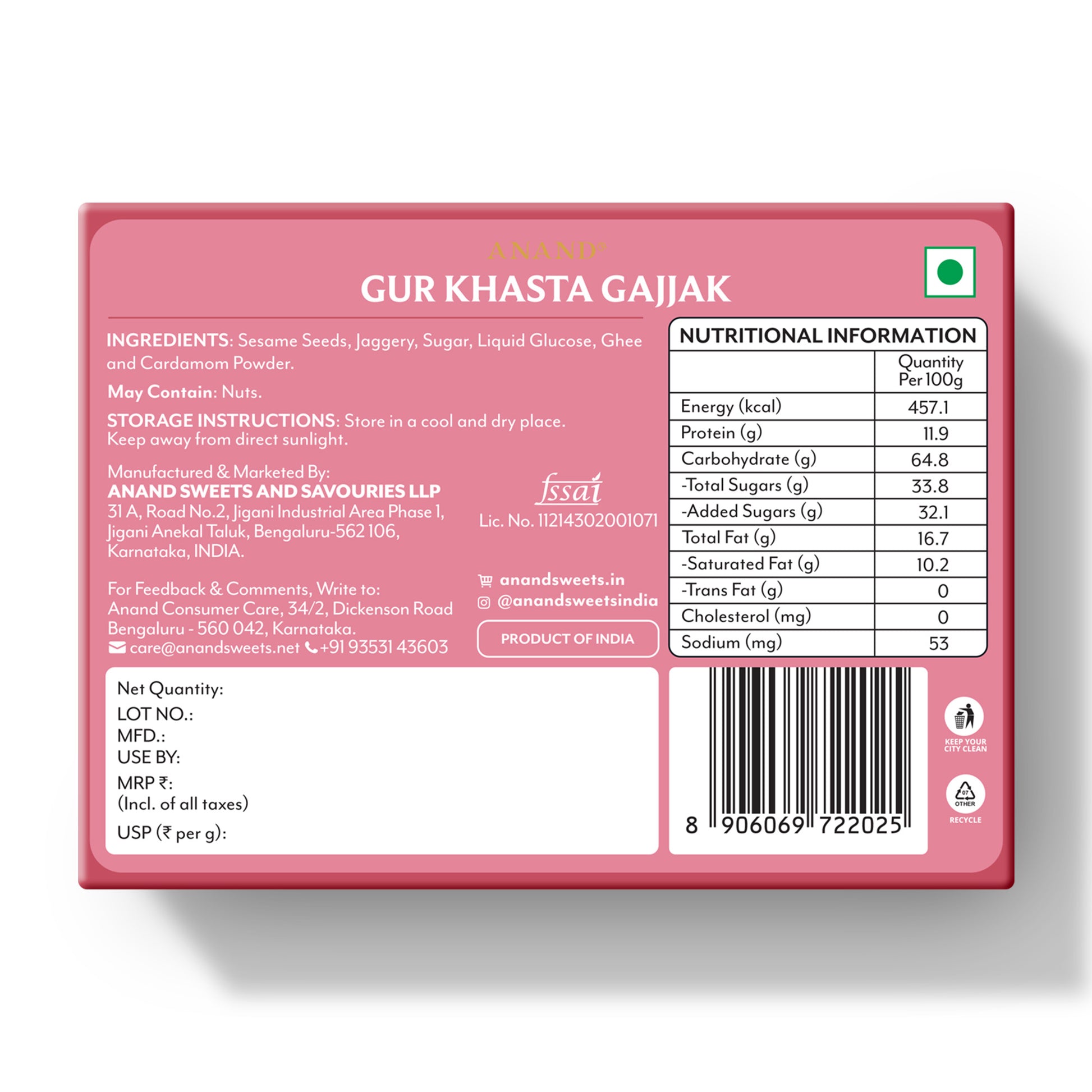 Store the Gur Khasta Gajak in an airtight container at room temperature for up to 60 days. Keeping it in a cool, dry place ensures it stays crisp and fresh.